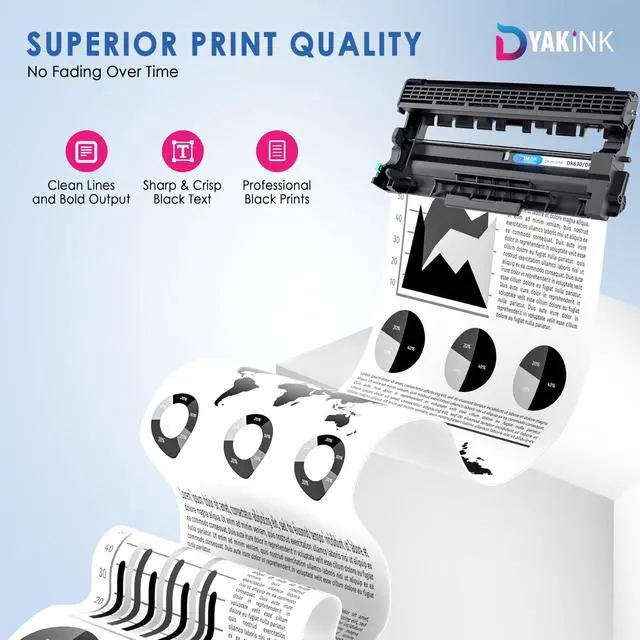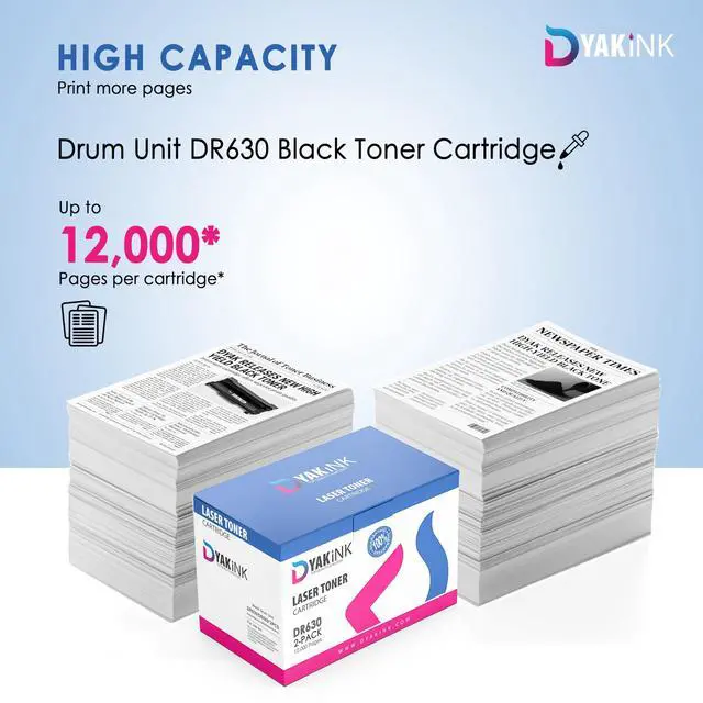 DYAK INK DR630 / DR660 Drum Unit 2 PackKeep your Brother printer performing at its best with the DYAK INK DR630 / DR660 drum unit 2-pack. Each drum unit yields up to 12, 000 pages at 5% coverage, providing a total of ~24, 000 pages per pack. Designed for consistent and reliable printing, these drum units ensure sharp text and professional-quality results when paired with TN660 or TN630 toner cartridges. DYAK INK drum units are fully compatible with a wide range of Brother printers. Installation is simple and hassle-free, helping reduce downtime while maintaining excellent print quality.
