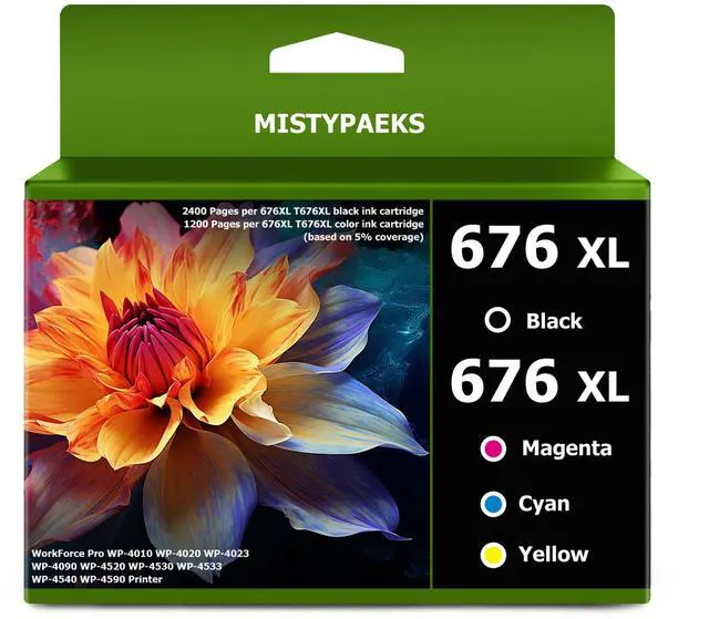 COMPATIBILITY: 676XL Ink Cartridges Works with WorkForce Pro WP-4010, WP-4020, WP-4023, WP-4090, WP-4520, WP-4530, WP-4533, WP-4540, WP-4590 printers ^^
