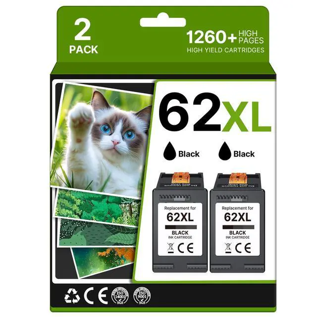 Product name: 62XL Ink Cartridges Black Replacement for HP Ink 62XL HP 62XL Cartridge Work with HP OfficeJet Mobile 200 250 OfficeJet 8040 5040 ENVY 5540 5660 7640 5643 7643 Printer (2 Black) ^^