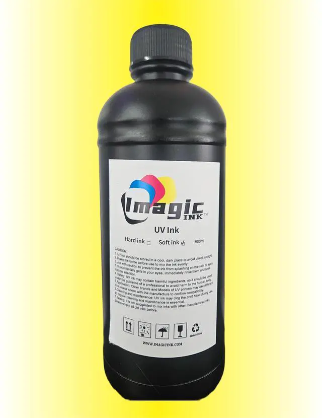 Imagic Ink brings you professional-grade UV printer ink in convenient 500ml bottles. This specialized ink is designed for UV printing applications and comes in multiple color options to meet your printing needs. Each bottle features a secure screw-top cap for easy handling and storage. For optimal results, store these inks in a cool, dark place away from direct sunlight. The formula requires shaking before use to ensure even consistency. Regular printer maintenance is recommended when using these UV inks to prevent print head clogging. Please note that compatibility should be verified with your specific UV printer model before purchase.