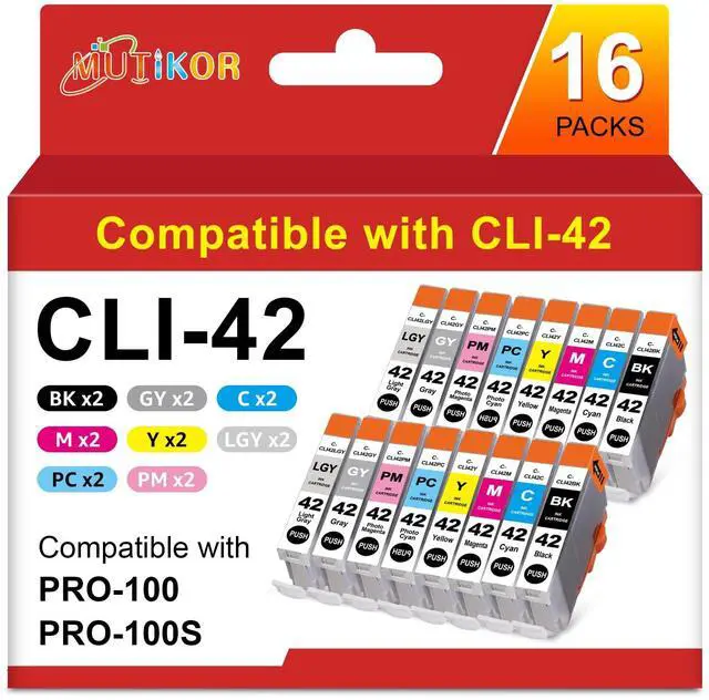 ^^ Quantity Included: 2* CLI42 BK, 2* CLI42 C, 2* CLI42 M, 2* CLI42 Y, 2* CLI42 PC, 2* CLI42 PM, 2* CLI42 GY, 2* CLI42 LGY, total 16 Pack. (two more CLI42 BK included) ^^