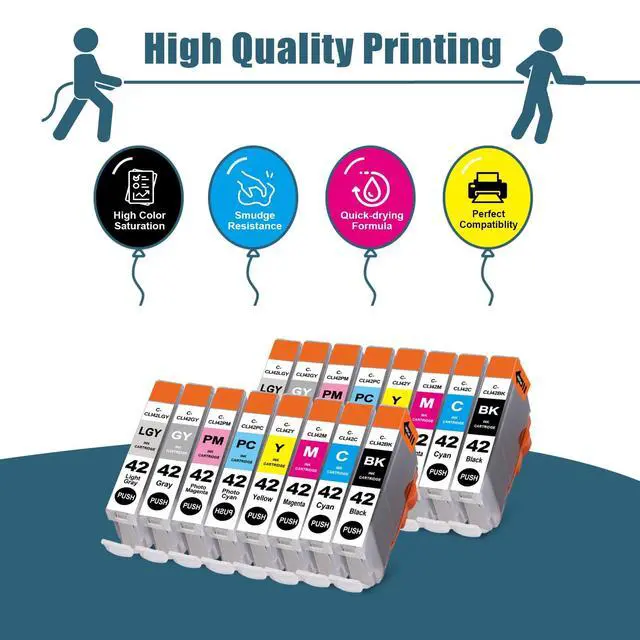^^ Anti-Clog Engineered: High-tech cli-42 pro 100 ink formula prevents drying and clogging for smooth, uninterrupted printing.