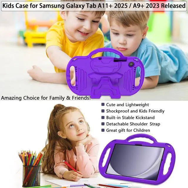 Perfect Compatibilityfor 2025 Release Samsung Galaxy Tab A11 Plus 11 Inch (SM-X230/ X235/ X236) and 2023 Release Samsung Galaxy Tab A9 Plus 11 Inch (SM-X210/ X216/ X218). NOT fit for ANY other models. (Note - Be sure to check your model number in the tablet settings before purchase). ^^ Cute DesignGalaxy tab a11 plus / a9 plus case for kids, designed with unique robot kickstand, prop up the stand anytime needed, start hands-free viewing in a comfy angle. Plus come in a series of enjoyable vibrant colors, fun and functional, amazing gift for children.