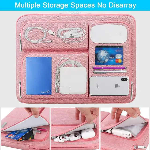 FITTED & ENOUGH STORAGE: Roomy main compartment with top loading design allows easy access to your MacBook or laptop, with 3 extra accessory zipped pockets to place chargers, cables, mouse, iPhone, wallet, power bank and other small items, convenient to well organize all your work or essentials. Try to be an excellent manager! ^^