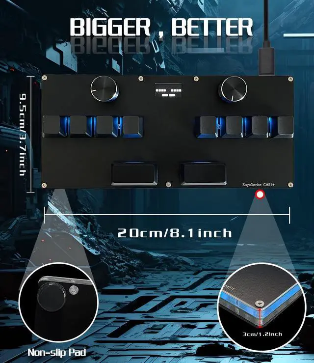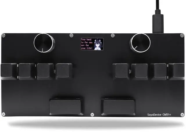 SayoDevice CM51+ KeyboardSuitable for OSU! djmax... Rhythm game Make you better and confidentSwitches10 OUTEMU pink switches, Rapid Trigger Hall magnetic Linear Switches. ScreenWith 0.96 inch IPS color screen, 160*80 Resolution. The screen can be customized, such as writing your own ID and custom picture.