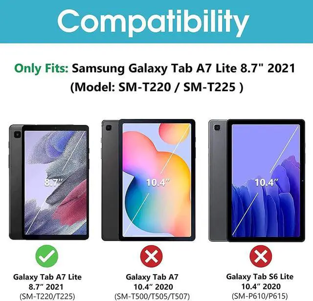 CompatibilityThis case is compatible with Samsung Galaxy Tab A7 Lite 8.7 Inch 2021 (SM-T220/T225/T227) tablet. It will NOT work for any other model device. ^^ Adjustable AnglesAdjustable angle design, Provide you comfortable viewing and typing experiences. Humanized design, convenient for viewing and working. ^^ Elastic BandWrap around the front cover to ensure closure without accidental opening when not in use. Securely fix and protect your tablet. ^^ Precise Cutouts Easy access to all the controls and features, Perfect cutouts for speakers, camera and other ports. ^^ Unique DesignThis case has multiple stylish designs, makes your tablet look more vivid and aesthetics, it is also a good gift for family and friends.