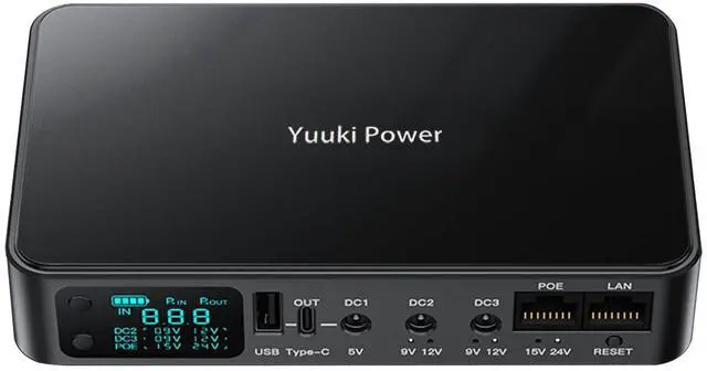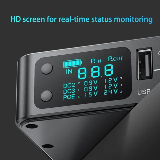 18000mAh (66Wh) battery backup provides hours of uninterruptible power for modem routers ^^ Works with DC 5V 3.6A, 9V2A, 12V2A, plus PoE 15V 1.3A or 24V 0.8A for your CCTV. USB-A and USB-C ports support PD fast charging ^^ Mini UPS, compact, weight 1.1 lb, no break battery backup ^^ Clear LCD screen shows real-time status ^^ Total MAX output 24W. Stable voltage, protection for short circuit, surge, overcharge, and over-discharge ^^
