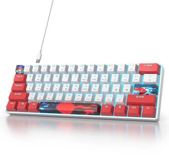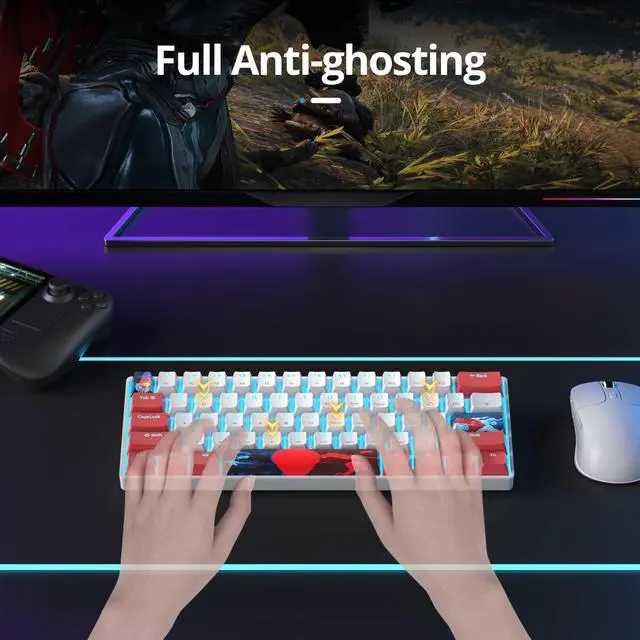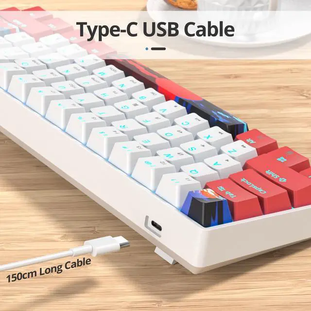 Ergonomic Design: Our 61-key compact keyboard is perfect for those who want a powerful keyboard without sacrificing desk space or portability. The 60% keyboard with PBT ergonomic keycaps, you'll experience comfort and ease of use like never before, ensuring long gaming sessions or extended typing workloads are a breeze.