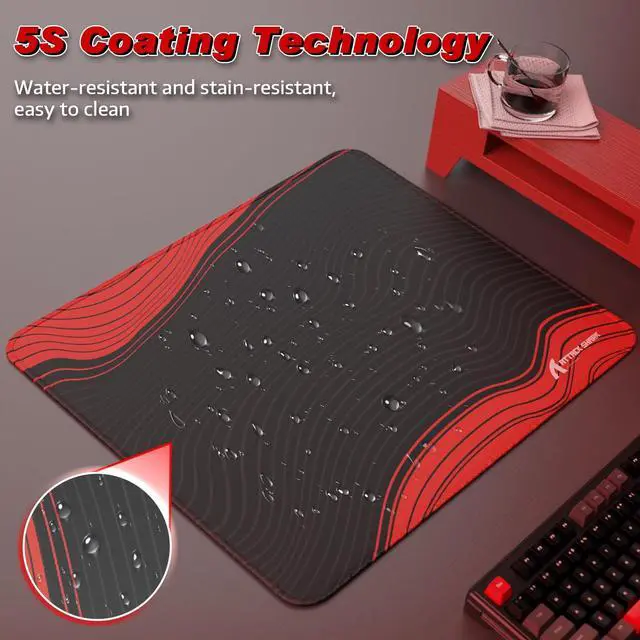 Attack Shark CM02 Gaming Mouse Pad with High-Density Fiber Surface,5S Coating Technology,4mm Thick Cushioning,Precision Edging,Anti-Slip Rubber Bottom for Enhanced Stability and Precision-Black Red