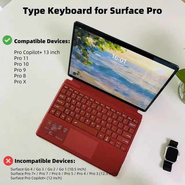 Compatibility: Zoof surface pro keyboard is designed for Surface Pro 13 inch, Copilot+ (11th Edition 2025), Pro 11 (2024), Surface Pro 10 (2024), Surface Pro 9, Surface Pro 8, and Surface Pro X. Please check your surface model before purchasing. NOT for Surface Pro Copilot 12 inch.