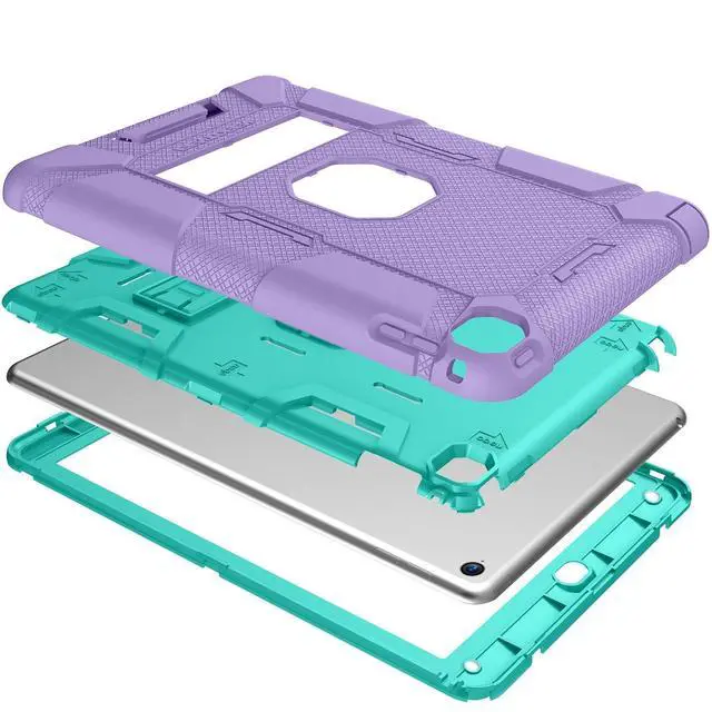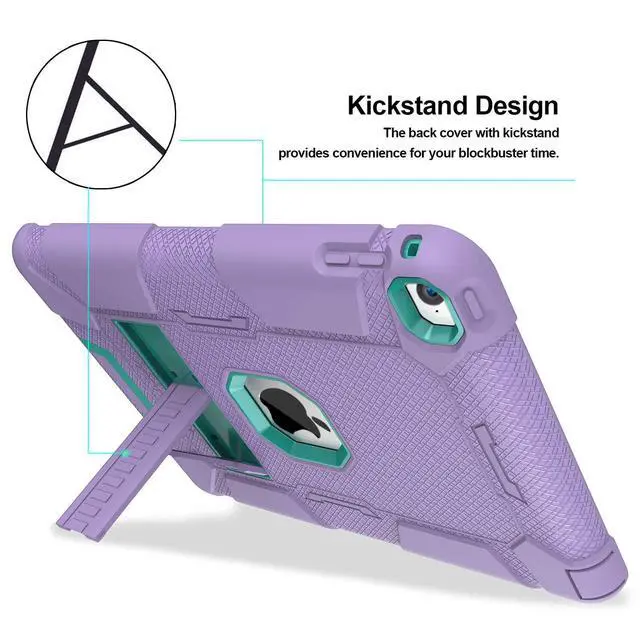 Product Features: Precise cutouts for improved access to all ports, buttons, cameras, speakers, and mics. The back cover with kickstand provides convenience for your entertainment time. Sturdy and easy to carry, idea for school and Kids Friendly. 3 in 1 design provides full body protection for you iPad Air 2. Hard PC Plastic front cover + Hard PC Plastic inner skin + Soft Rubber back cover. Provide full body protection for your iPad Air 2 to against any scratch, bump, finger marks, and dirt.. Long-lasting, resilient protective finish. The front rugged bumper will protect your screen against scratches when placed facedown.