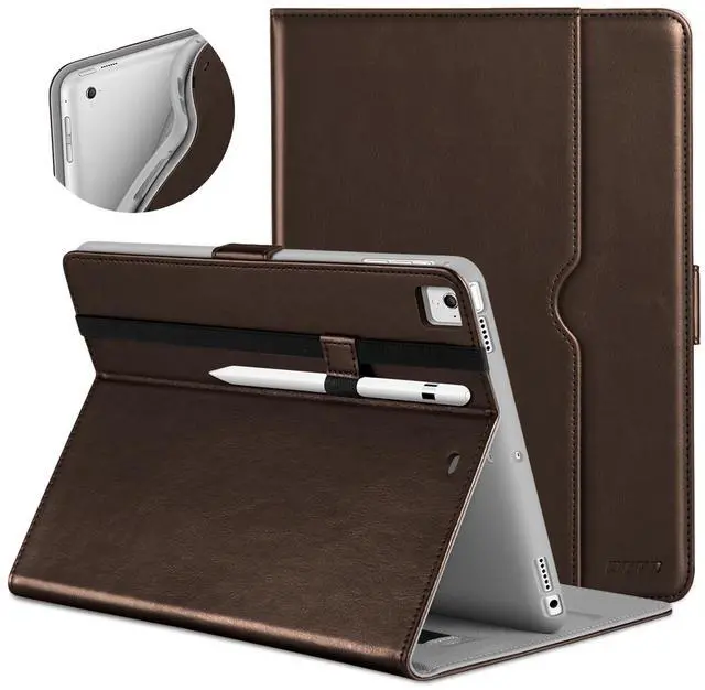 DTTO for iPad 9.7 Inch 5th/6th Generation 2018/2017 Case with Apple Pencil Holder, Premium Leather Folio Stand Cover Case for Apple iPad 9.7 inch, Also Fit iPad Pro 9.7/Air 2/Air - Dark Brown
