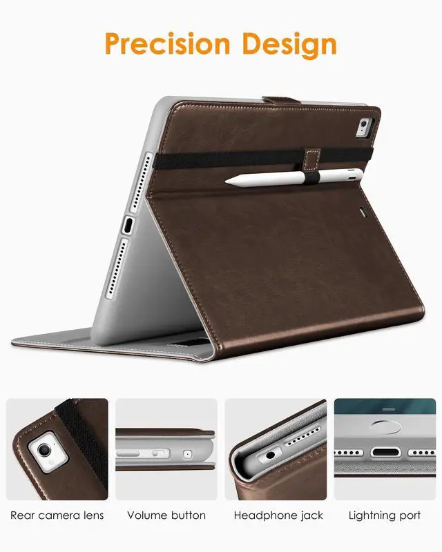 • DTTO Premium Leather Folio Case with Apple pencil holder for New iPad 9.7 2018 and 2017 Released(Model Number: A1822/A1823/A1893/A1954), also fit iPad Pro 9.7 inch (Model Number: A1673, A1674, A1675), iPad Air 2 (Model Number: A1566, A1567) and iPad Air (Model Number: A1474, A1475, A1476)