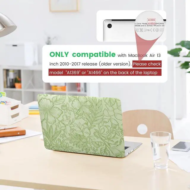 MacBook air 13 inch case: A good Blend of Style and ProtectionCompatible with Macbook air 13 inch case 2017-2010 Release (Model A1369 A1466) PLEASE NOTE- This case is NOT compatible with other macbook model. Please kindly check the model number at the bottom of your laptop (A****).