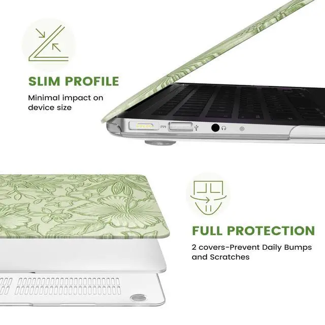 Feature: Engineered with precision, the protective hard shell construction defends your device against scratches and impacts while maintaining a slim, lightweight profile. The snug fit ensures security without adding bulk, and the easy installation/removal process enhances convenience. Experience full functionality with precision cutouts granting seamless access to ports, buttons, and vents. Choose from a curated collection Of unique and creative designs that resonate with your style. Two-piece design, easy to clip on and take off, lets you open/close your easily all the time. Clamps all around the body of the computer and provide you with great all-round protection.
