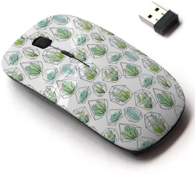 2.4G Wireless Mouse with Cute Pattern Design for All Laptops and Desktops with Nano Receiver - Watercolor Floral Cactus Cactuses