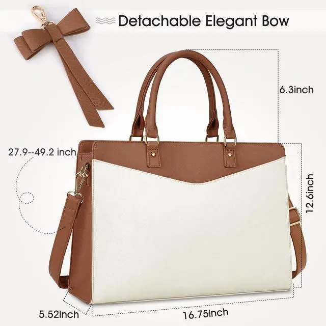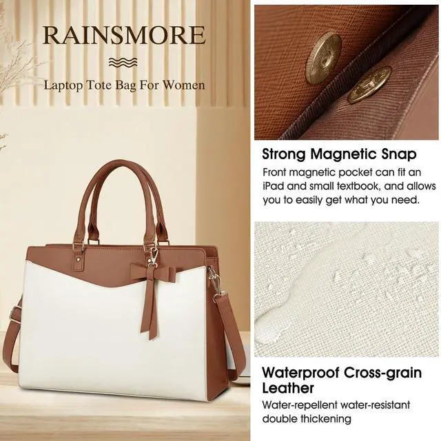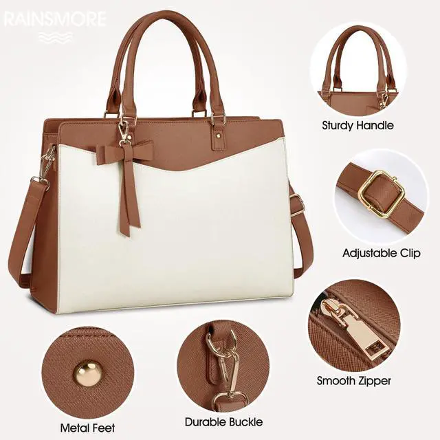 Elegant Laptop Tote: RAINSMORE Work bags for women come with a detachable premium bow, adds an extra feminine touch to this minimalist laptop tote bag for women. To tie or not to tie, both which personalize your styles and retain a sense of chic. Perfect gift choices for anniversary, birthday, Mother's Day, Valentine's Day and Christmas.