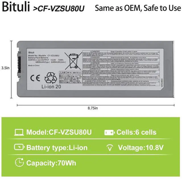 Color: Grey, This battery provide the same battery life as the original, We are a professional laptop battery manufacturer, We only provide the best quality batteries to ensure the best possible buying experience for our customers ^^ Compatible Part NumbersCF-VZSU80U CF-VZSU82U CF-VZSU83U VZSU80U ^^ Compatible ModelsFor Panasonic Toughbook CF-C2 CF-C2AECCHCE Series ^^ Bituli QualityAll of Bituli products are Certified by CE, and UL for safety. Strict guidelines for compatibility, and standards compliance for environmental safety. Bituli battery packs are comprised of grade "A" cells with top quality ion battery materials that ensure Reliable performance extended battery life ^^ Bituli Support24 x 7 Email support, Rest assured with 30 days Refund12 months Replacement, For any other problems or advise please feel free to contact us, If you are not satisfied for any reson please let us konw, we promise to deliver you a FAST resoluton