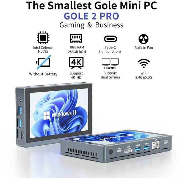 Users can easily transfer data, connect peripherals, and even charge their devices, including power banks. This versatility enhances convenience and flexibility in usage, resulting in increased productivity and seamless integration within the digital ecosystem. ^^ MINI PC WITH Touch ScreenThe HIGOLE MINI PC can be used for touch screen business office, leisure and entertainment, easy use. HIGOLE MINI PC can also be used to remotely control other micro PCs or smart home systems using remote desktop protocol. ^^ MINI Computer OS SystemMicro PC with latest Win 11 Pro, which is support to remote desktop access, supports system upgrade.