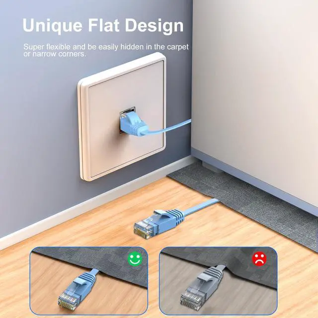 Space-Saving Flat Design: Flat Cat6 network cable is designed to prevent tangles and save space. It's highly flexible, making it easy to run under carpets, around doors, rotating arms, or drawers ^^ Premium
