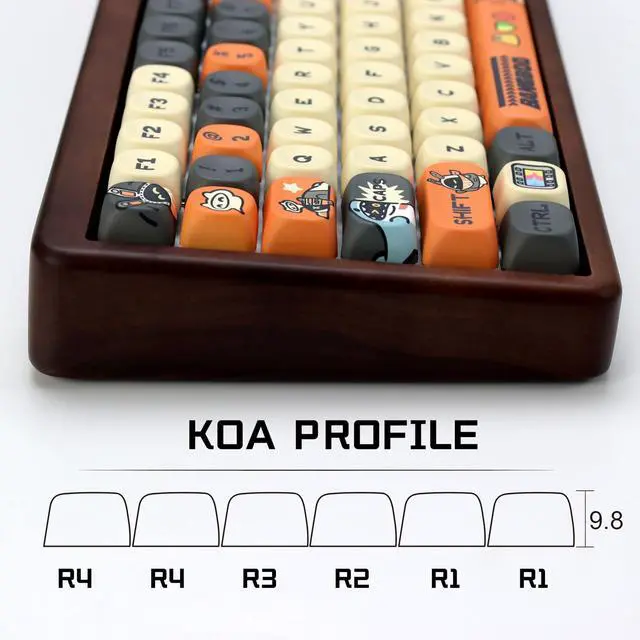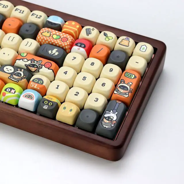 KBDiy KOA Profile-KOA Profile similar to MOA Profile, Ergonomic Arc layout, concave arc, fingers contact the keycaps in a larger area, the touch is smoother, making you feel more comfortable when using ^^ Accessories Included-This keyboard keycap set consists of 133, Keycaps do not include the keyboard. The keyboard in the picture is for display purposes only. Cute keycaps make up the Bangboo series, you can DIY your own unique keyboard ^^ Five Sides Dye-Sublimation PBT Keycaps-Upgrade five-sided thermal sublimation technology to never fade. Keycaps with thickness will make users feel more texture.