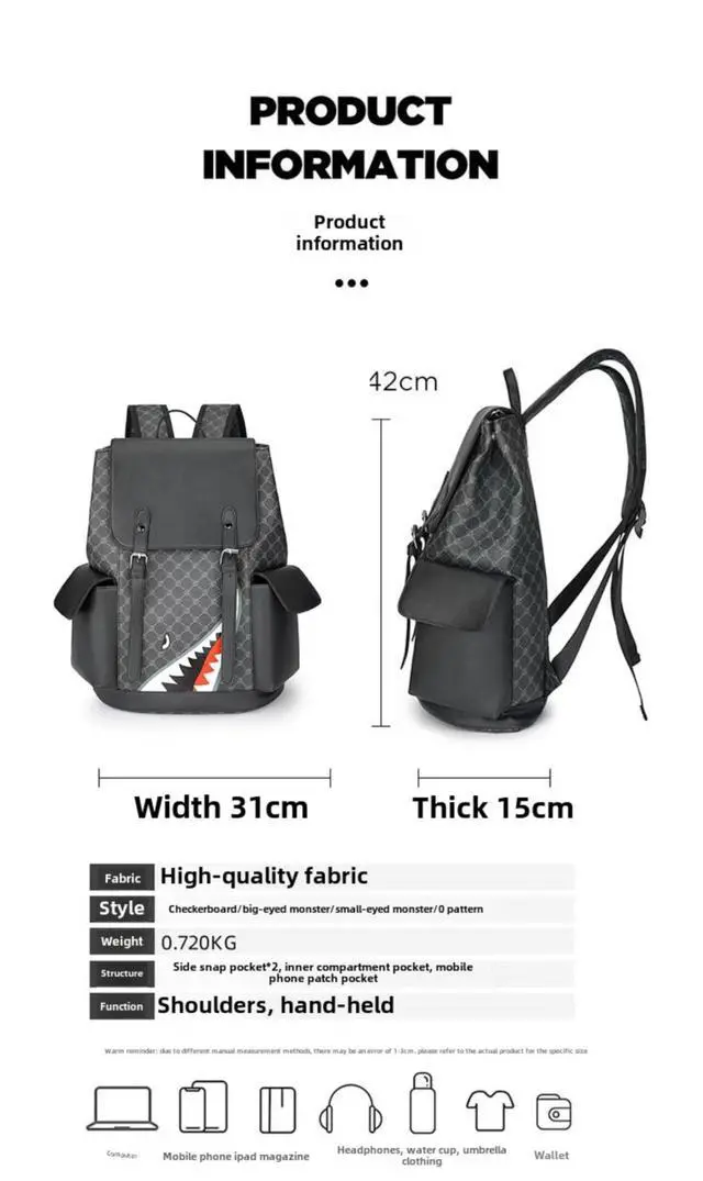 Pockets: 1 roomy main double zippered pocket with small inner pouches, 1 front zippered pockets, 2 water bottle holders both sides, 1 padded laptop compartment fit a laptop up to 15.6 inchgood size fashion backpack for going to work, gym, recreation, weekend getaways, travel, and casual daily use.