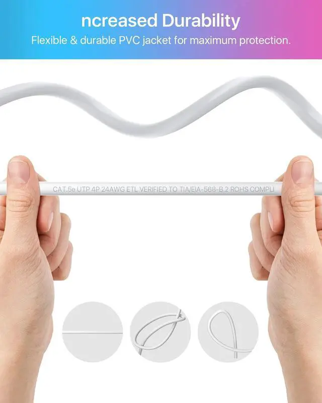 High compatibilityThis ethernet cable is Cat 5e rated. With the RJ45 connector, the internet calbe could connect the LAN network router, PC, network media players, PoE devices, and other device. ^^ High QualityCat5e ethernet cable is made by high quality plastic & PVC connector. The cable core is 1/0. 523BC*ID0. 9HDPE+4P OD5. 3, more stable and durable. ^^ Compatible for PoE security systemThis cable could be highly compatible for Power over Ethernet security system, such as PoE security cameras, PoE security NVR, PoE switch etc.