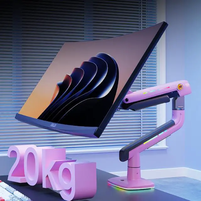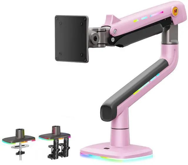 NB Gaming Monitor Arm or for 32 to 60 Inches Screen, Load up to 20 kg, VESA 75/100, RGB-Light, Heavy Duty, Multi Angle Adjustable, Premium Aluminum, Pink