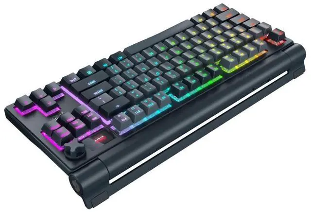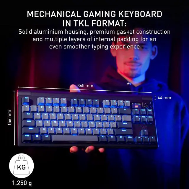 ^^ ROTARY KNOB AND LCD DISPLAY FOR ULTIMATE CONTROL. The intuitive knob and screen make it easy to adjust RGB lighting, access media controls, and seamlessly switch connection modes or toggle between paired devices. The screen also displays battery status, typing speed (APM), and offers three customizable profiles for personalized settings. ^^ HOT-SWAPPABLE CHERRY MX2A SWITCHES. The worlds most trusted mechanical keyboard switch just got better. CHERRY MX2A is a transformative upgrade to the CHERRY MX used in more than 60 million keyboards worldwide. With precisely applied premium-grade lubricant and a new innovative spring design, the MX2A brings you smoother actuation, improved acoustics, and a lifespan of 100 million keystrokes.