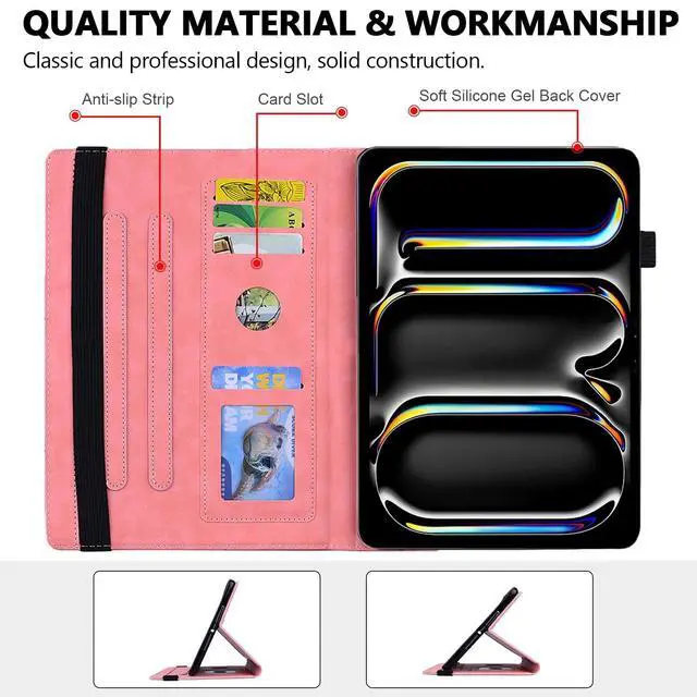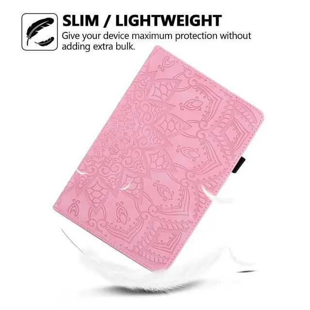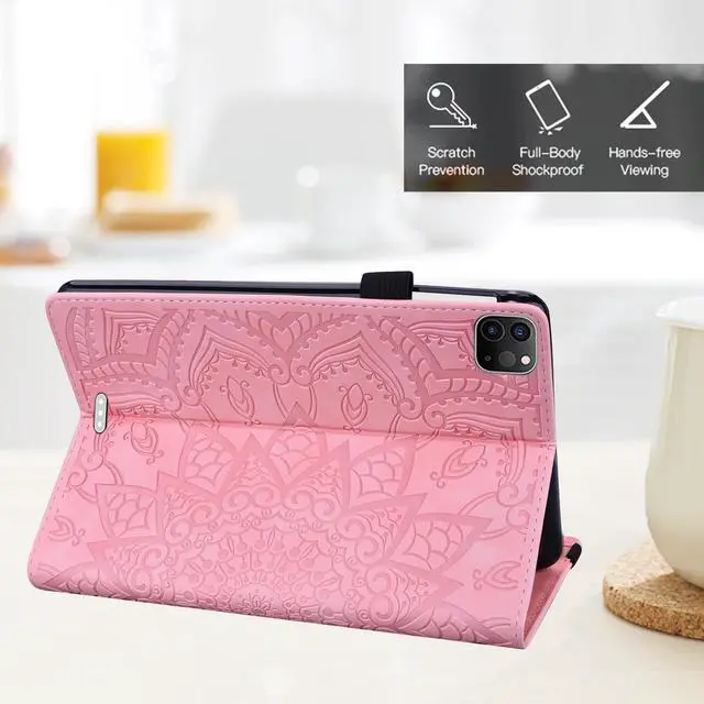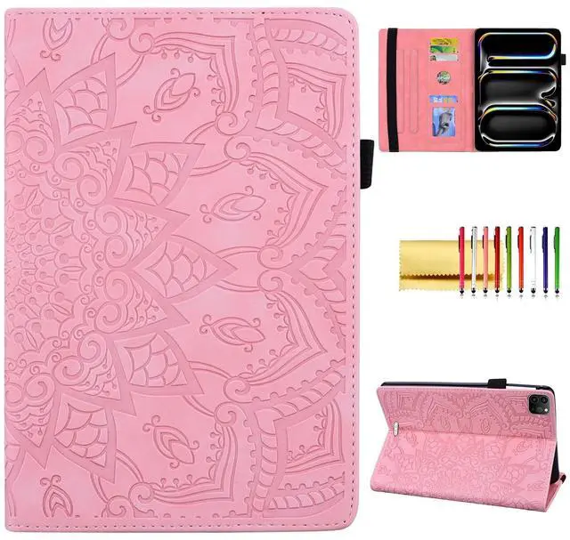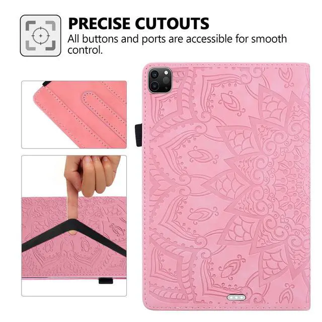 A2926Features: Elegant Mandala Embossed Pattern Surface, offers exquisite and attractive look for your tablet. Easy access to all controls (charging port, camera, volume button etc) without removing the case. *The iPad Pencil charging requires removing the cover. Elastic strap closure ensures cover securely closed, double fixing your device when fold the front cover backward for reading. Front-to-back protective cover case give a full protection for your tablet against dust, water, fingerprints, scratches, shocks and bumps. It can be converted into a stand with adjustable viewing angles that allows you to view it easily when it is placed on a desk or table. Interior with 4 card slots for carrying your ID, credit cards, business cards, photo or some notes. Side with an elastic loop holder for your Apple Pencil Pro or other stylus pen.