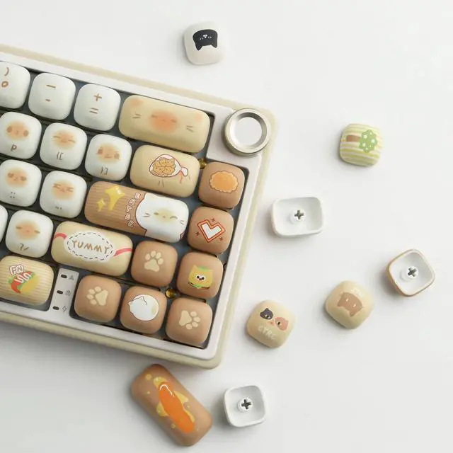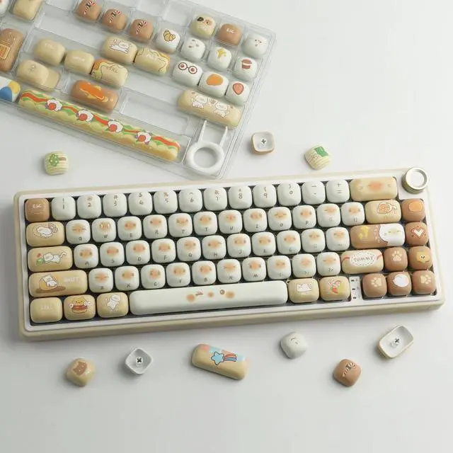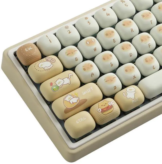 Thick PBT Keycaps: These 137 keys bread cat keycaps are made of PBT material, with a matte texture and anti-grease coating, thick and durable, fine workmanship, and not easy to get dirty ^^ MOG