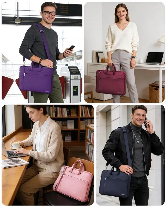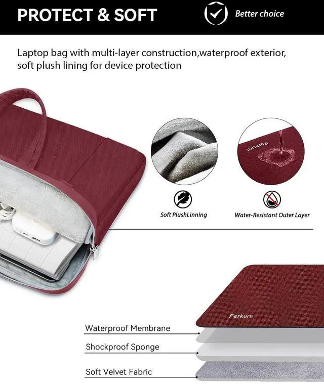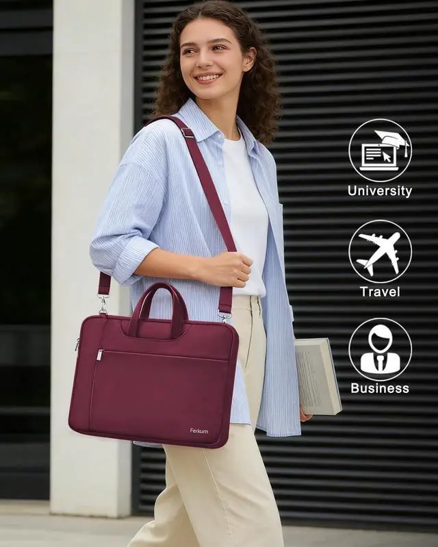Internal dimensions: 16.9" x 12.4" x 1.1". Crafted from water-repellent polyester, this laptop bag ensures reliable protection against water and moisture. Its lightweight, slim, and soft design enhances safeguarding for your laptop while maintaining flexibility. Complemented by a detachable shoulder strap for versatile portability, this laptop bag is ideal for daily commutes or travel, combining practicality with modern aesthetics.