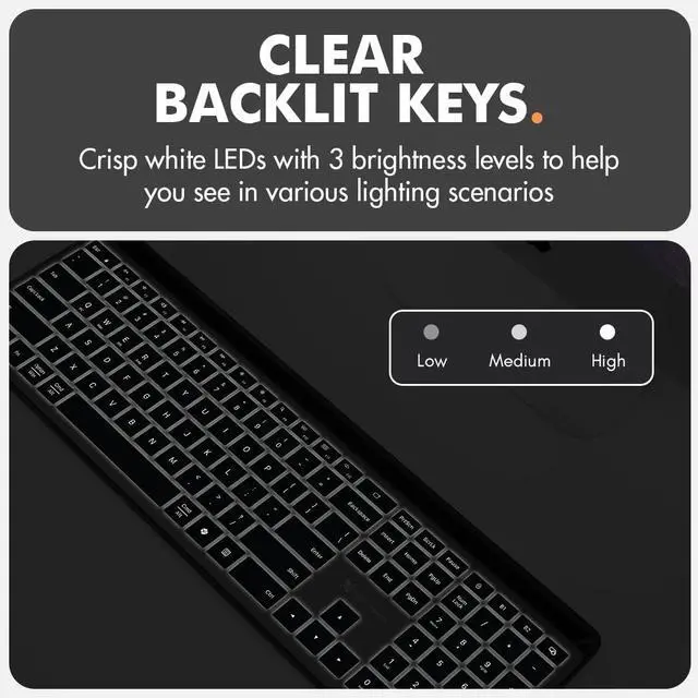 Number Pad): Type precisely with the full-size 110-key layout, making our wireless bluetooth LED keyboard for iPad and tablet an ideal choice for efficient, productive workflows.