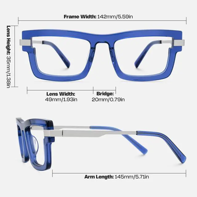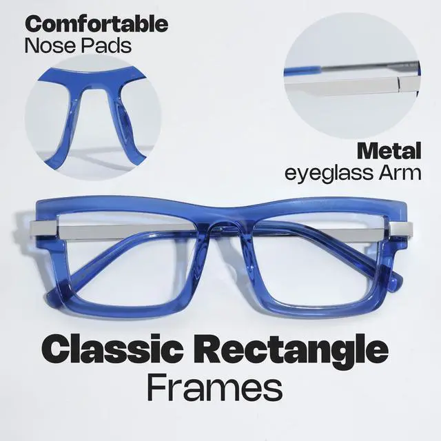 Elevate your style with our rectangular glasses frame, designed for the modern man. Express your individuality with our fashionable design and bold color choices. ^^ Crafted from high-quality acetate, our glasses frame ensures durability and comfort for all-day wear. The sturdy material offers a sophisticated look while providing a lightweight feel. ^^ These clear lens glasses are perfect for adding a touch of sophistication to any outfit. Whether at work or social events, our frames are versatile and always in style. ^^ Blue light blocking glasses can effectively block blue light and UV400, which is very suitable for people who often work in front of the screen or play games.