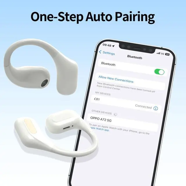 Instant Pairing: With advanced Bluetooth 5.3 technology, you get faster transfer speeds and a more stable connection. Open the charging box cover and the open-ear Bluetooth headset will automatically pair. Just click "C01" on the Bluetooth list on the device to connect, avoiding complicated operations and saving waiting time. ^^ 25 Hours of Long