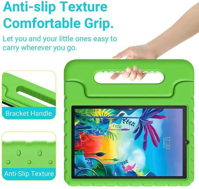[For LG G Pad 5 10.1 ] Designed only for LG G Pad 5 10.1 FHD 2019 tablet. NOT compatible with any other models. Please check the model number on the back/packing box of your tablet before purchase ^^ [Lightweight] Constructed from shock-absorbing and impact-resistant non-toxic EVA foam material, and this Super lightweight kids case will efficiently protect your tablet from scratching and shocking ^^ [Portable Design] Large handle designed for comfortable one-hand grip to easily carry and travel. The handle can be folded, stand with 2 angles for convenient viewing, typing, learning and entertainment.