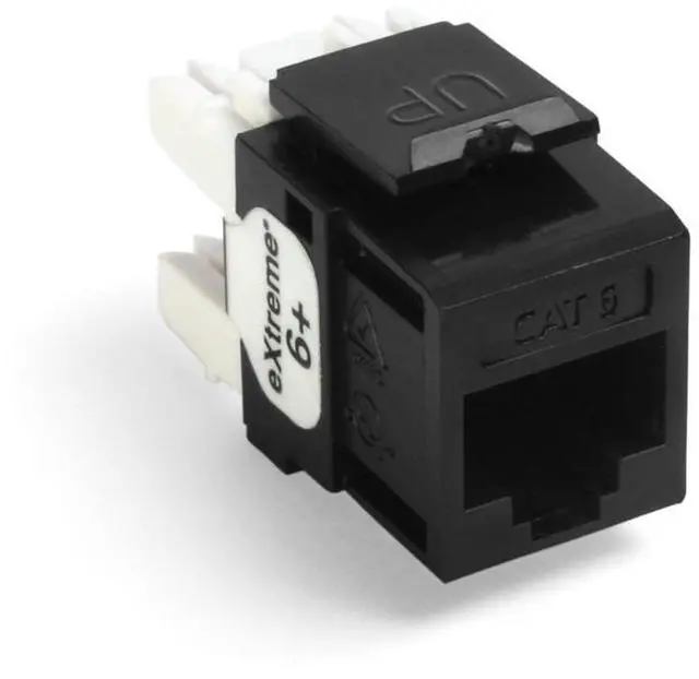 Leviton's extreme 6+ Connector is designed to be used with all Leviton QuickPort compatible products The connectors include Leviton's patented "Retention Force Technology" (RFT) which promotes consistent performance over the life of the system Includes unique pair separation towers allowing for quicker and easier terminations The connector is configured in a 180 Degree configuration such that the punch field is in the back, allowing for rear termination.