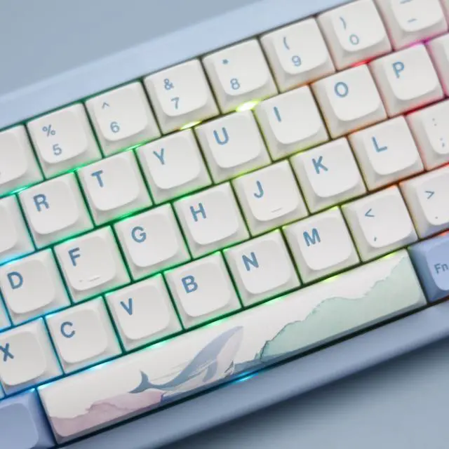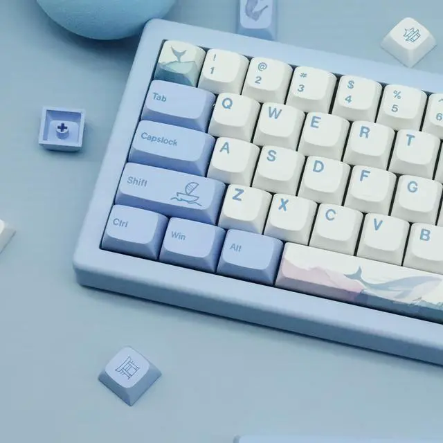 GREAT QUALITY PBT KEYCAPS The dye sublimation PBT keycaps provide durability, using advanced dye sublimation technology making the pattern/letter not fade. Which is not easy to be oiled and grainy, and the dye sublimation process is not easy to wear off. ^^ XDA PROFILE KEYS Every single key of the XDA profile is the same height and shape. Have a cuter, rounder look, which is ideal for making a variety of theme keycaps. ^^ CUSTOM THEME KEYCAPS These custom keycaps are some ocean theme cute keys, including unique elements that represents deep sea creatures such as whale, jellyfish, sea horse, which