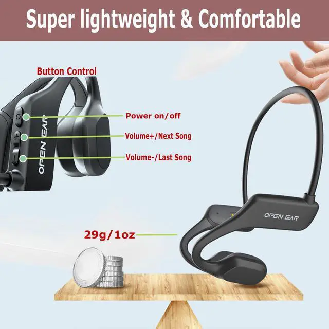 And you can use the button controls control play, pause, skip and answer calls easily. Besides, this wireless sports headphone with IP56 waterproof allows you to exercise without fear of sweat and rain. ^^ [Bluetooth 5.3 & Long Battery] Our bluetooth headphones can work with most bluetooth devices, connection is easy and signal transmission is stable, bluetooth transmit distance can up to 10m/30FT. Working time of this open ear earbuds is 8 hours, it needs about 2 hours for a full charge with magnetic charging ^^ [Comfortable & SturdyHeadphones] This air induction bluetooth headphone is super lightweight only 29g/1oz, comfortable to wear for all-day listening even with the glasses.
