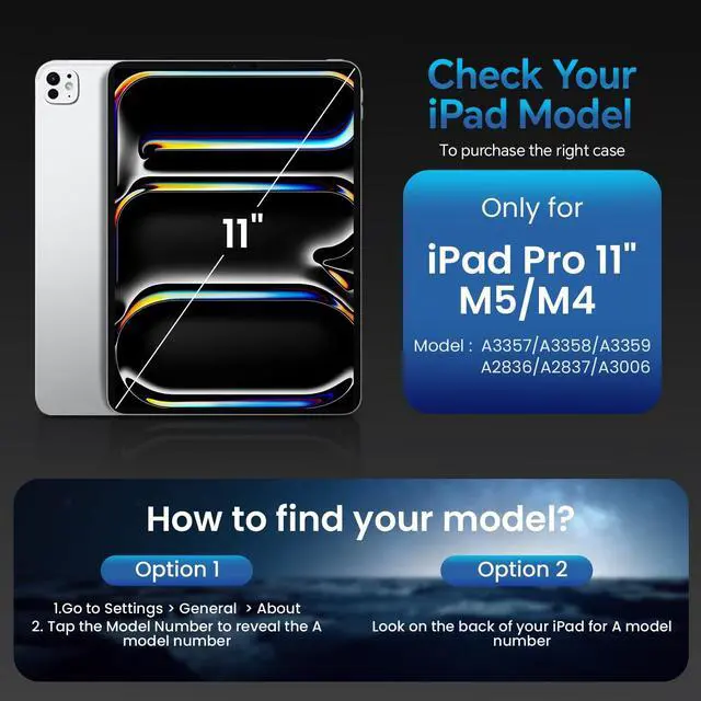 Perfect Compatibility: This Case is ONLY for iPad Pro 11 inch (M5) 2025 (Model number: A3357/A3358/A3359) and iPad Pro 11 Inch (M4) 2024 (Model