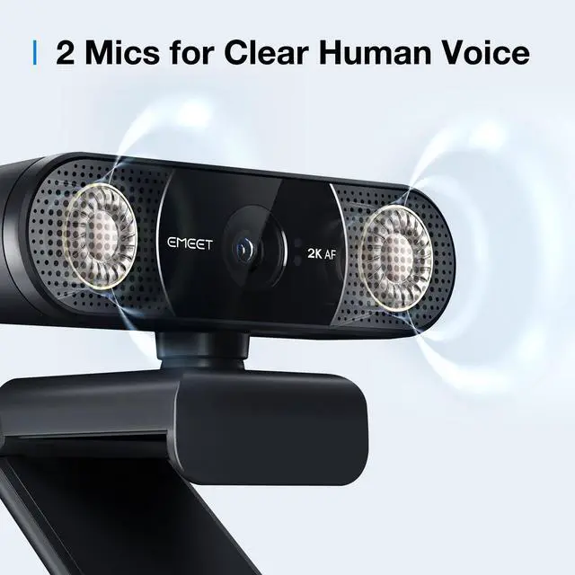 Webcam: Clarity and Privacy] Upgrade your video calls with the C960 2K computer webcam. Enjoy crystal-clear 2K resolution and a 30fps frame rate. Worried about privacy? No problem. The webcam has a removable privacy cover. Perfect for working from home or in any high-privacy setting. Elevate your video communication with the C960 2K computer webcam. ^^ [Fast and Accurate Autofocus with TOF Technology] Our C960 2K webcam uses advanced Time-of-Flight (TOF) technology for fast and accurate autofocus. This ensures that the camera stays focused on you at all times, regardless of lighting or environmental conditions. With TOF, you won't have to worry about blurry or unfocused videos ever again! ^^ [Crystal-Clear Audio and Adaptive Lighting] C960 2K web webcam provides no-noise audio with dual microphones, noise reduction chip, and AGC algorithm. It also has auto low-light correction to adjust to dim lighting conditions and the streaming webcam features like low-light boost, color boost, and exposure adjustment to make you look great in any lighting. ^^ [Plug-and-play & 76 Field of View] No driver required! The EMEET C960 2K pc webcam can be used without drivers to realize plug-and-play, saving you trouble.