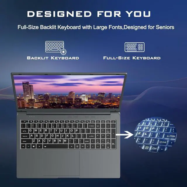 FULL-SIZE LARGE FONT KEYBOARD - laptop 17 is designed for older users with a larger font keyboard, large screen laptop is easier to operate, 17 in laptop makes entering text more accurate. ^^ BACKLIGHTED KEYBOARD - The laptop notebook keyboard is equipped with a backlight function, laptop comouters can operate clearly in low-light environments, no need to worry about not being able to see the keyboard. ^^ LARGE SCREEN DISPLAY - 17 in laptop features a 17.3 inch high definition screen, laptop large screen provides a larger display area, laptops 17 inch makes viewing and operation more comfortable.