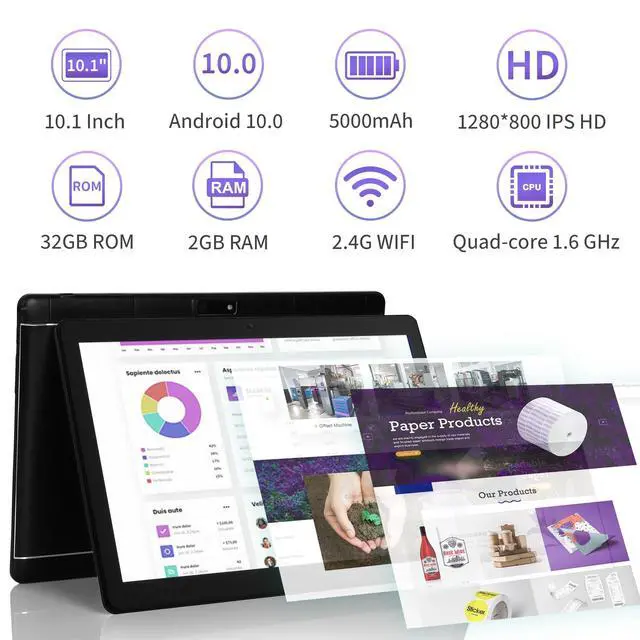 [Powerful battery] 10.1 -inch Android tablet built-in 5000mAh rechargeable battery, enjoy longer running time and standby time. The tablet takes you into the world of entertainment, providing massive gaming, social, and sharing applications. ^^ [ 10.1 -inch IPS high-definition touch screen] 800*1280 resolution large screen, Built-in Bluetooth, wifi, gps, dual cameras. Very suitable for streaming TV, videos, movies, online reading, games, etc. ^^ [High-performance system] Android system, quad-core, 1.3 GHz CPU to ensure fast and stable operation of the tablet, bringing you unlimited entertainment, massive games, social networking, sharing APP everything.