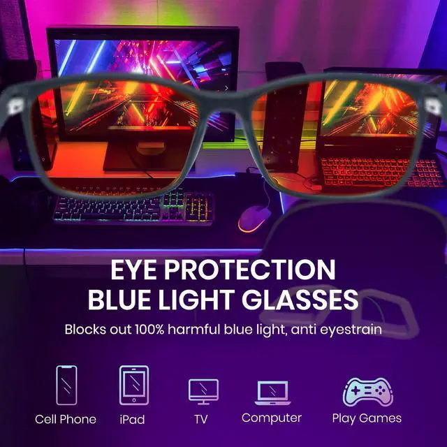 DescriptionProtect your eyes from digital eye strain with our premium TR90 blue light blocking glasses. Designed for comfort and style, these square frame computer glasses feature anti-UV and anti-reflective lenses to provide comprehensive eye protection. Whether youre working long hours at the computer, gaming, or simply browsing on your smartphone, our blue light filter glasses help reduce eye fatigue and improve sleep quality. The lightweight TR90 material ensures durability and all-day comfort. Upgrade your eye care routine with these versatile blue light glasses suitable for men and women.