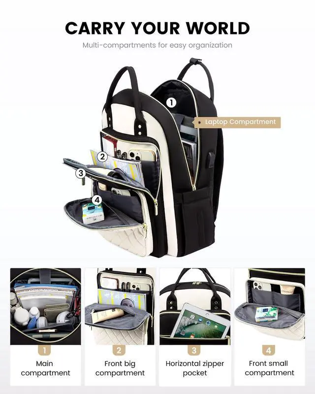 It easily accommodates your daily needs or items required for a three-day trip ^^: This backpack features ergonomic breathable mesh shoulder straps and a large quick-grab top handle. With 18 pockets, multiple compartments, and multiple pocket divisions, you can keep your items organized and easily find what you need. It is ideal as a work, college, or travel backpack ^^ Laptop