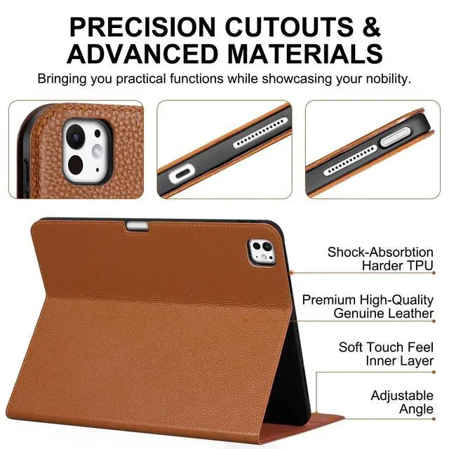 Thryxop Genuine Leather iPad Case, Premium protection meets elegance for your iPad pro 13 inch (M5/M4) 2025/2024. Crafted with genuine leather, this case features a adjustable stand (perfect for work, streaming, or calls) and smart magnetic sleep/wake to save battery. Precision-cut ports, anti-slip grooves, and reinforced edges ensure full functionality with lasting durability.