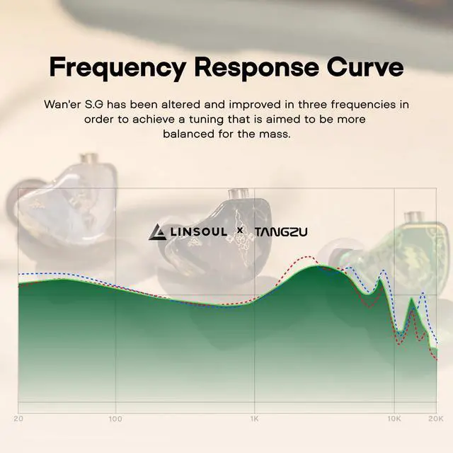After all the tweaking made, the overall performance of it is satisfying with a smooth, full bodied and clean sounding presentation. This earphone is a new attempt of the brand to pursuing an overall musical but balanced sound with more thick and spacious sound signature. ^^ Dual Cavity Chamber, Fine TuningWith massive useful feedback from the previous earphoines, the Waner S. G has been altered and improved in three frequencies in order to achieve a tuning that is aimed to be more balanced for the mass. When you look at the comparison of Zetian Wu, Waner S.