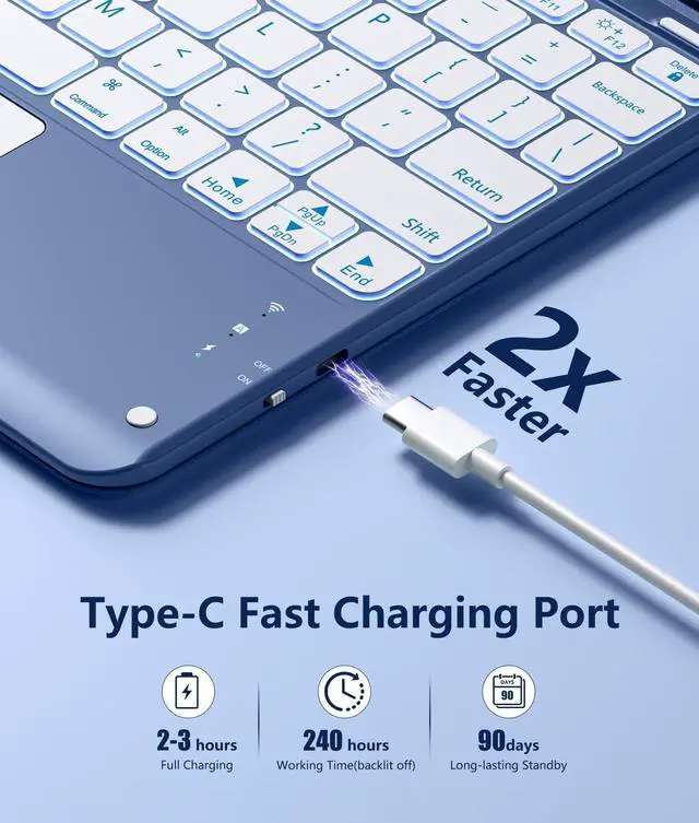 ^^ Long Life Battery Rechargeable KeyboardBuilt-in powerful 500mAh battery for iPad pro keyboard case 12.9 inch. It will enter energy-saving mode automatically if not in use for 15 minutes, which worry-free use and long standby time. Using a Type-C charging port of keyboard charges faster, only 2-3 hours fully charged ^^ Multiple Viewing AngleFind the perfect angle of the for iPad air keyboard case 13 inch for any task with 3 adjustable view modes. Whether you're typing, watching videos, or drawing, you can change where the tablet is on the case and maximize comfort nd productivity.