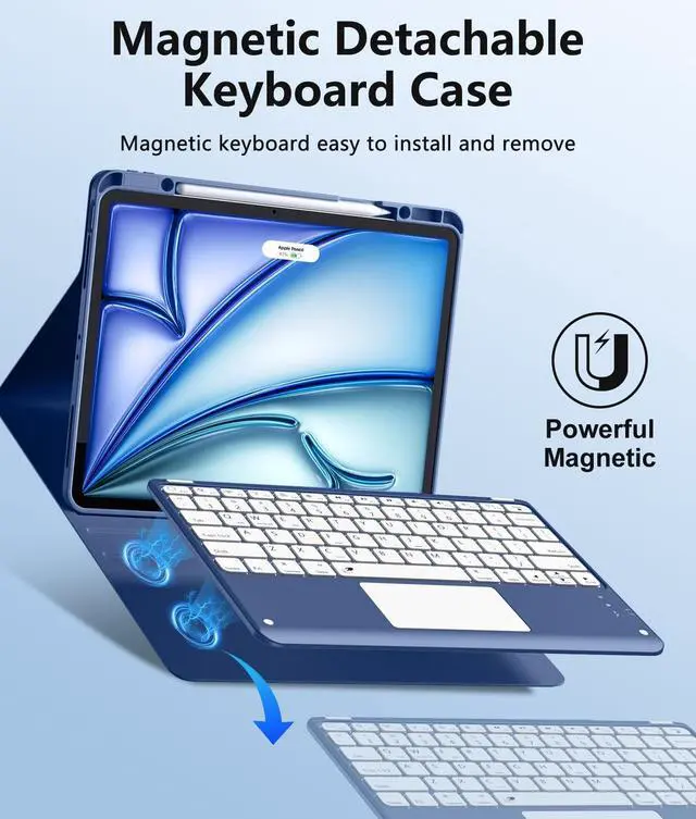 it's well-made, great for fast typing, and navigate, browse, and control your tablet in a whole new way, making it easier to perform tasks without touching the screen, like editing documents, browsing the web, and managing applications smoother and more efficient ^^ Magnetic Detachable KeyboardSwitch effortlessly between a laptop-like experience with keyboard case for iPad air 13 inch and a tablet. Ultra-strong magnets seamlessly combine for iPad 12.9 case with keyboard that provide more convenience while typing that can be attached to the case and easy removal when you need it, perfect for both stationary work and on-the-go use.