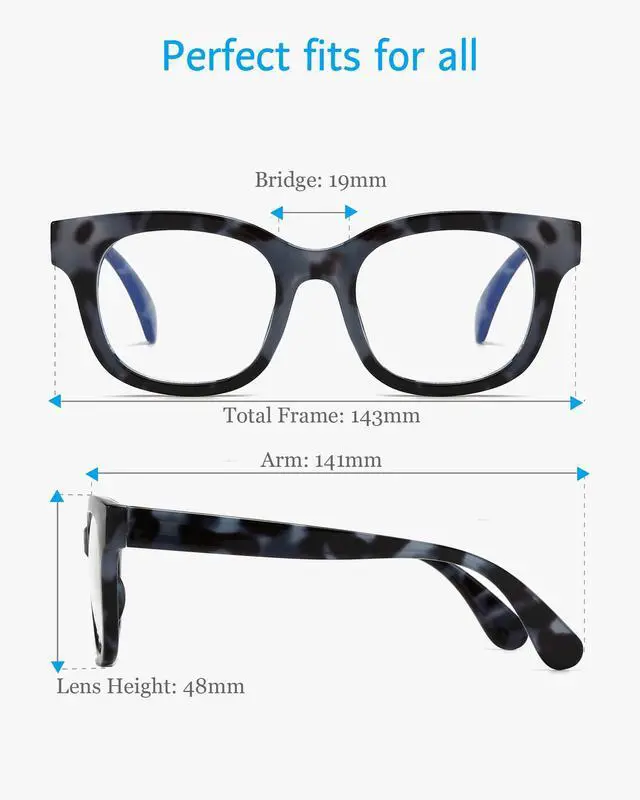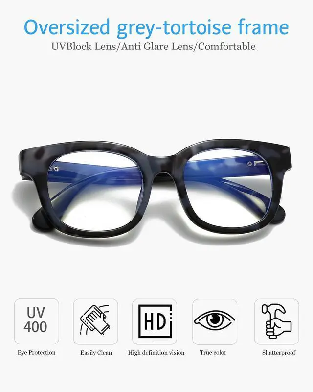 REDUCE EYESTRAIN - Enjoy your digital time without worrying about eye fatigue, blurred vision, or headaches. ^^ ANTI BLUE LIGHT - Block 90% of blue light, relieving eye fatigue, dryness, and vision issues. ^^ BETTER SLEEP - Reduce eye strain and headaches, helping you enjoy a more restful and deeper sleep. ^^ STYLISH EYEWEAR FRAME - Available in classic leopard print and personalized gray leopard print, these oversized frames are incredibly durable and feature flexible hinges, ensuring a comfortable fit for everyone. The lenses block blue light, making them perfect for use with any electronic device.